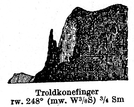 Als der dänische Kronprinz Frederik im Jahre 1844 die Färöer besuchte, nannte er den Felsen Kongespiret, wie er auch jetzt noch von vielen genannt wird. Südwestlich vom Troldkonefinger liegt etwa 300 m vom Lande ein kleiner Felsen, der ungefähr 7 m aus dem Wasser ragt.